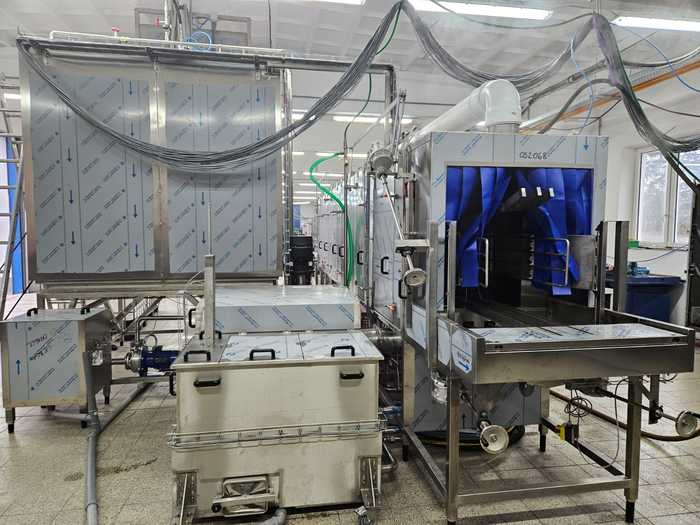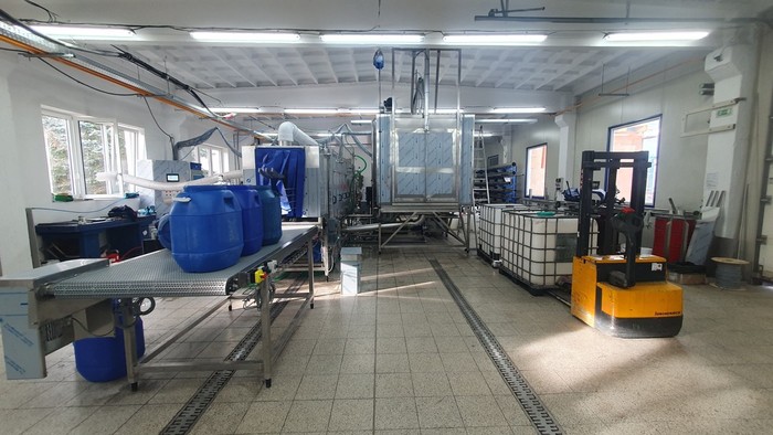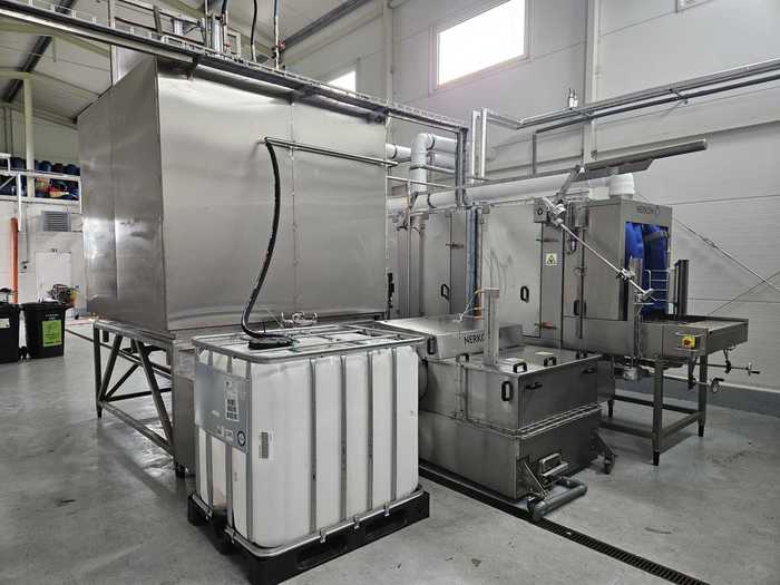 - Vapour exhaust from the inlet and outlet of the continuous part of the washer and from the chamber for washing IBCs and waste bins.